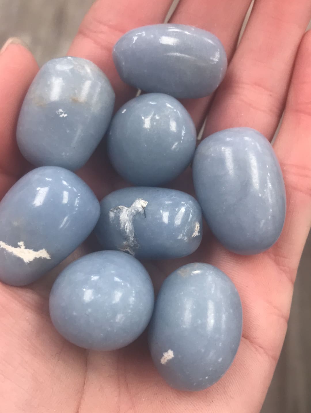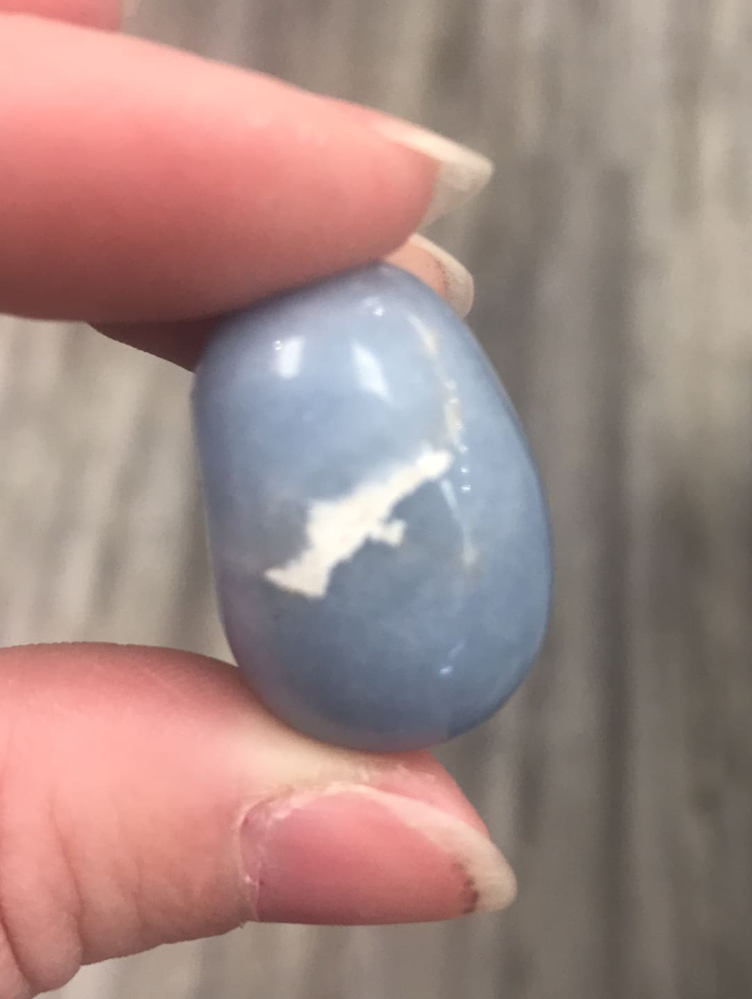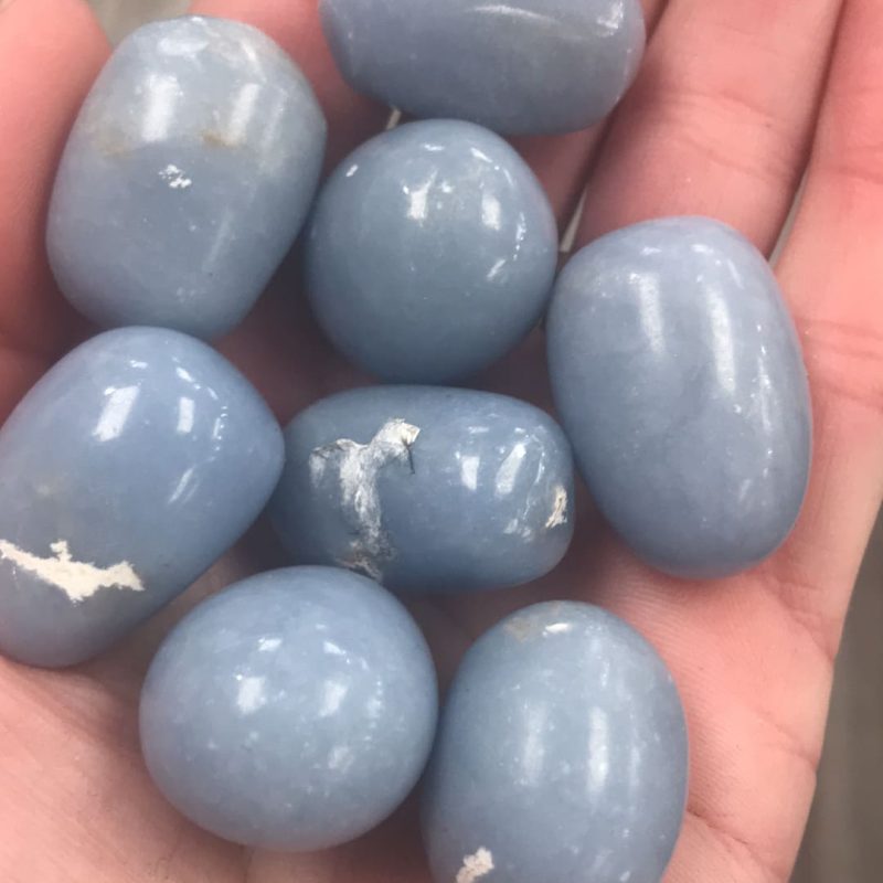 Angelite tumbled crystal nnsize, shape and color vary. Napproximately 1-1.5”nnangelite brings awareness and peace. Connects to angelic realm. Great crystal for ‘healers’!