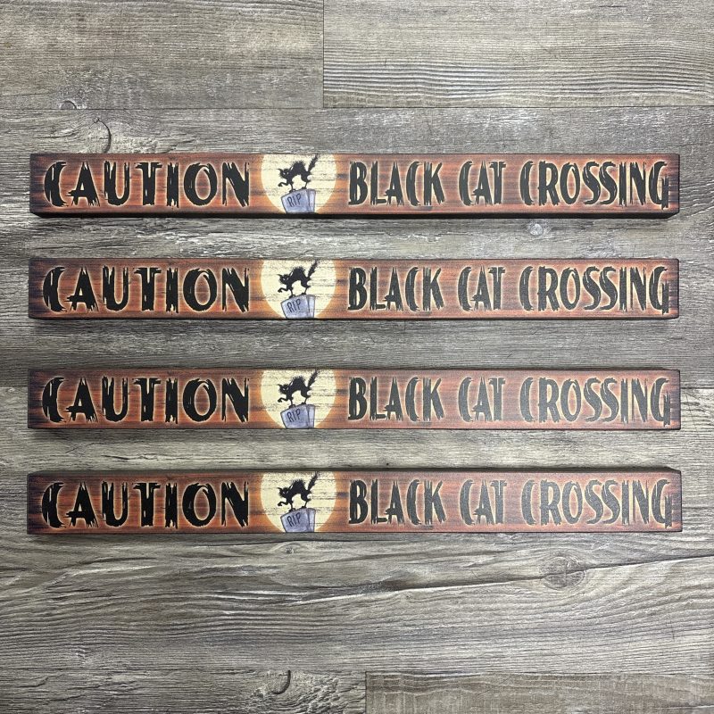 Caution Black Cat Crossing Wood Sign