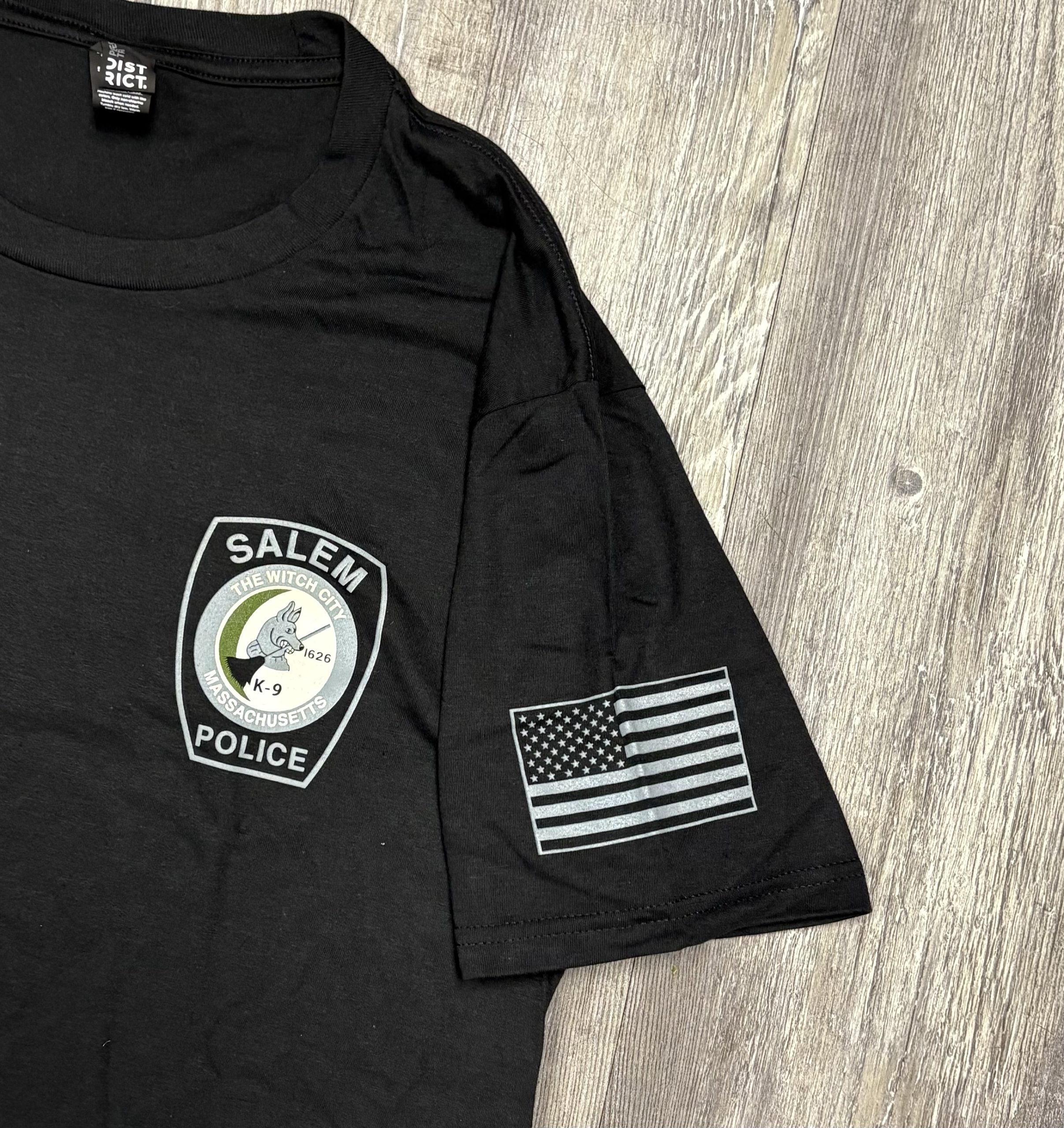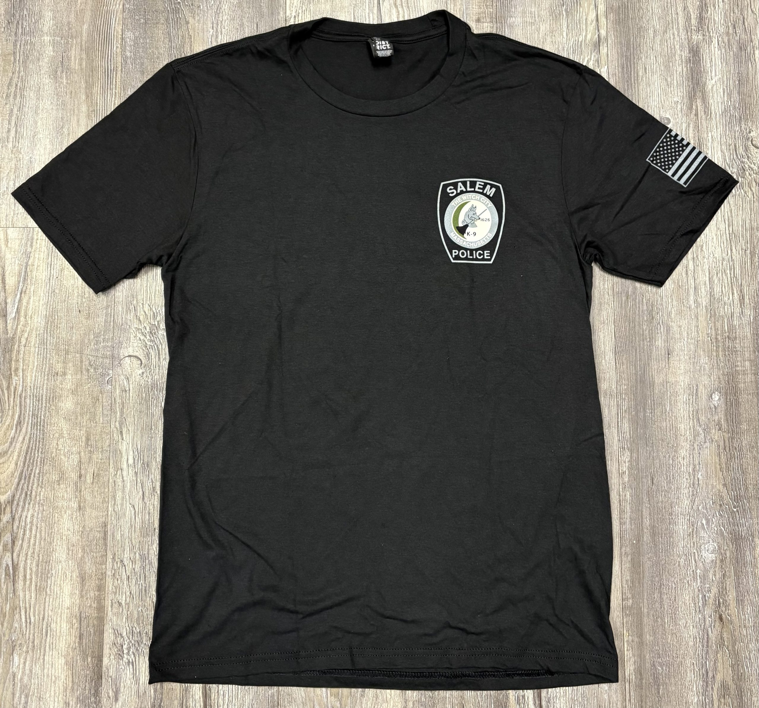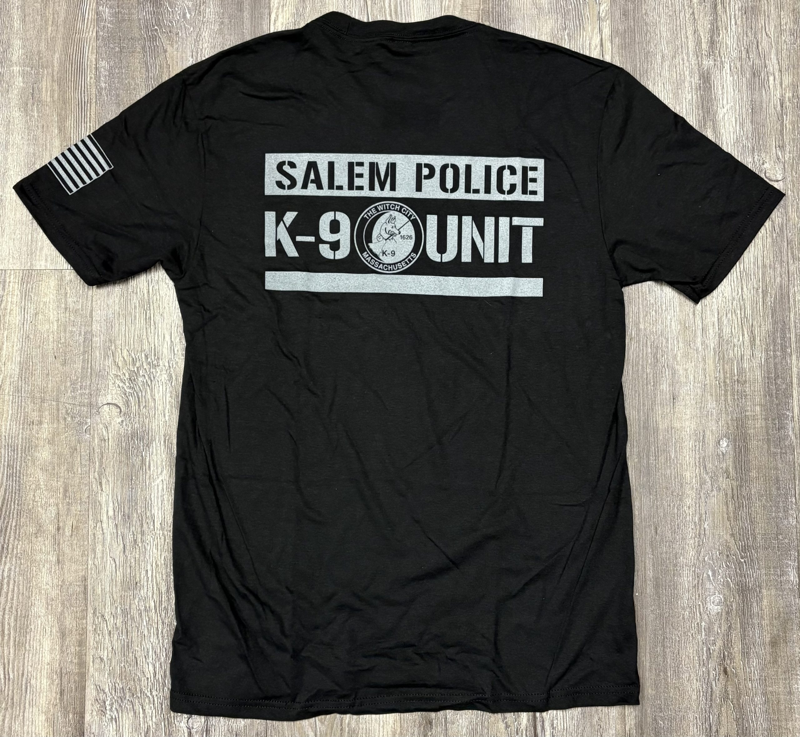 SPD K9 Patch on front, flag on sleeve, print on back.