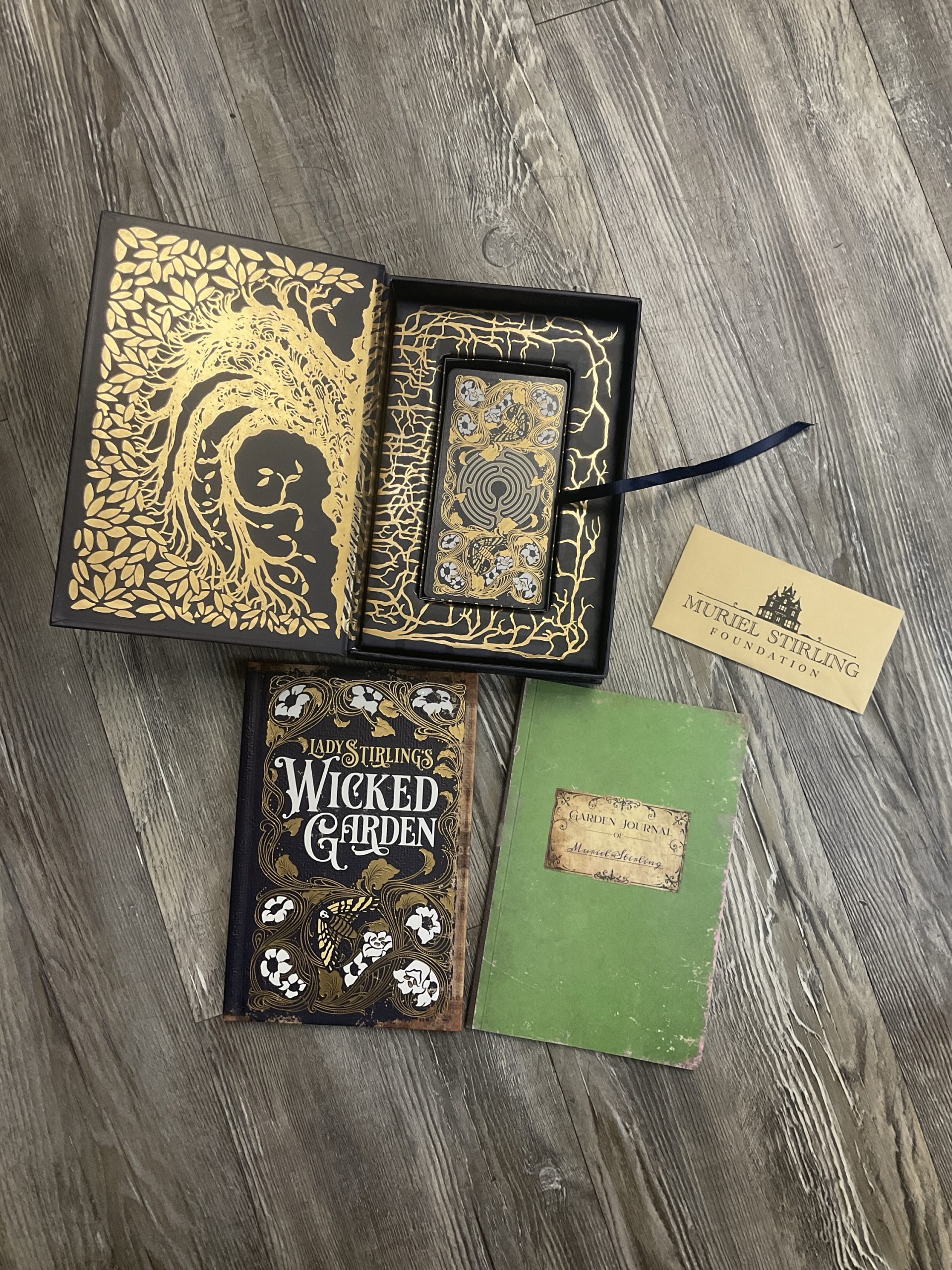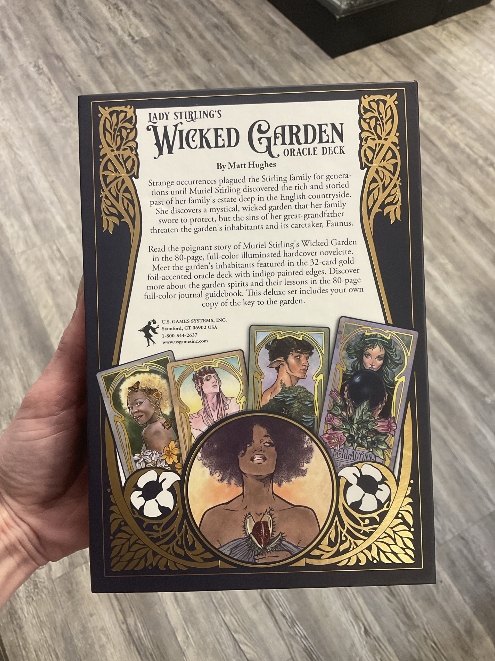 Strange occurrences plagued the Stirling family estate until Muriel Stirling discovered a mystical, wicked garden where she meets the garden’s inhabitants and its caretaker, Faunus. Read the poignant story of Muriel Stirling’s Wicked Garden in the 80-page, full-color illuminated hardcover novelette. Meet the magical creatures living in the garden, featured in the 32-card gold foil-accented oracle deck with indigo edges. The 80-page full-color journal guidebook invites you into meaningful conversations with each garden spirit—from the deadly nightshade Belladonna to the fragrant Angel’s Trumpet—offering gentle yet powerful reflections on nature, emotion, and the hidden patterns within our lives. Deluxe, collector-worthy set includes your own copy of the key to the garden.