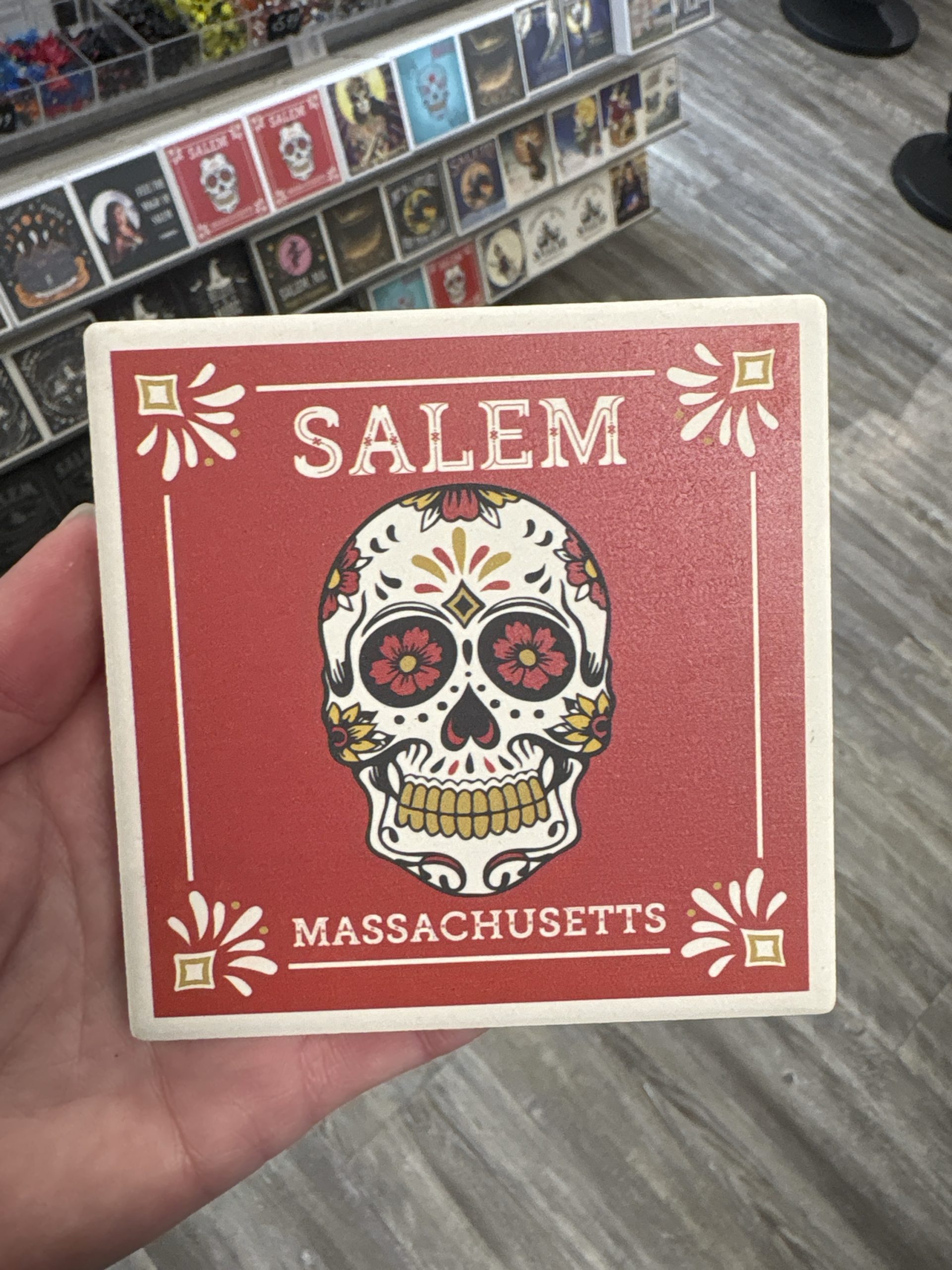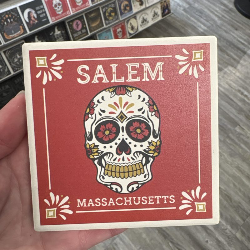Salem Massachusetts Red Sugar Skull Ceramic Coaster