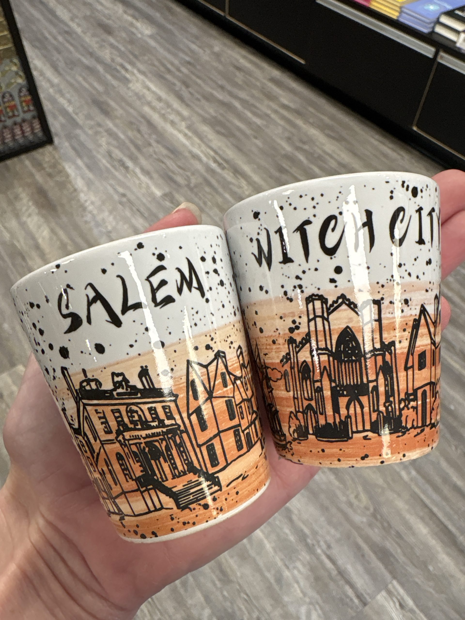 Salem Witch City Skyline Shot Glass Orange