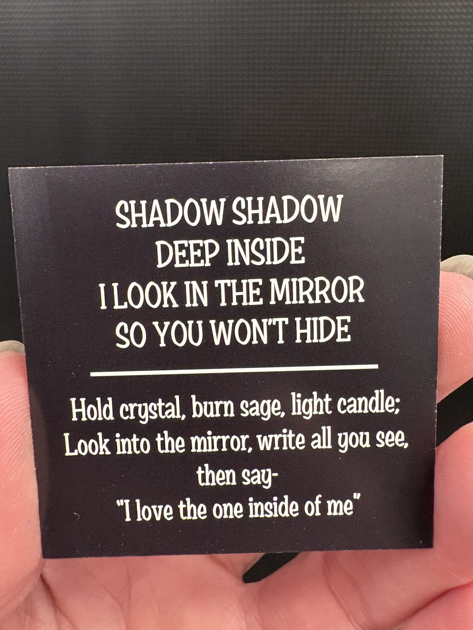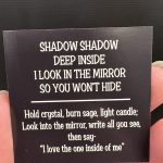 Hold crystal, burn sage, light candle: look into the mirror, write all you see…then say